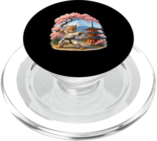 Karaté Kitty Arts Martiaux Chat au Japon Sakura Mountain Fuji PopSockets PopGrip pour MagSafe