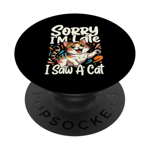 Sorry I'm Late I Saw A Cat PopSockets PopGrip Adhésif