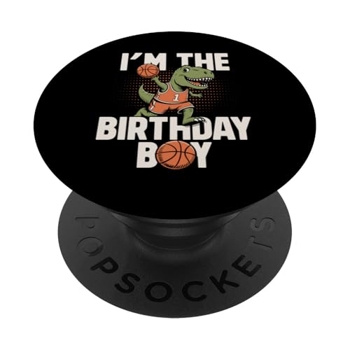 I'm The Birthday Boy T-Rex Dino Basketball Birthday PopSockets PopGrip Adhésif