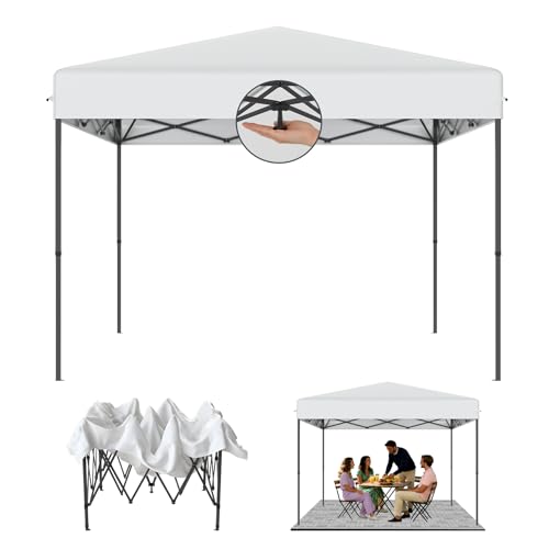 UISEBRT Tonnelle pop-up 3 x 3 cm, étanche, stable, résistante à l'hiver, anti-UV, pliable, verrouillage centralisé à un bouton, 3 hauteurs réglables, 240 à 260 cm, pliable, avec sac, blanc