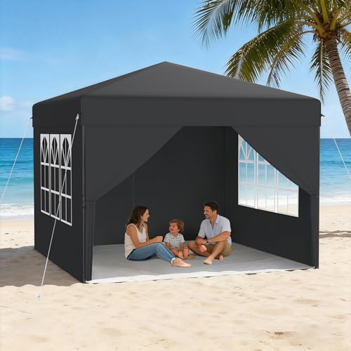 HOMEDEMO Tonnelle de Jardin Pop-Up 3x3m anthrazite, 4 Parois Latérales - Installation Rapide à Une Seule Personne - Parfaite pour Plage, Festival