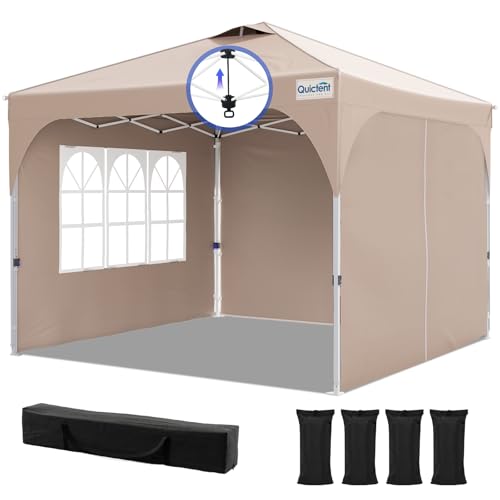 Quictent Tonnelle pop-up 3 x 3 m - Tonnelle pliable - Tente de jardin - Tente de jardin - Avec 3 côtés de fenêtre amovibles - Imperméable - Sac de transport - Beige