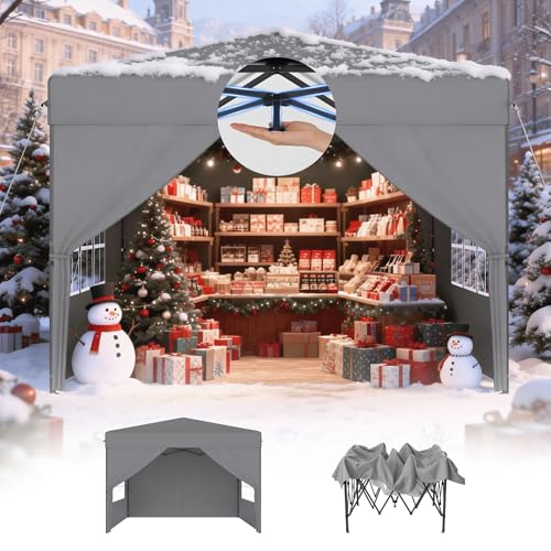 UISEBRT Tonnelle pop-up 3 x 3 cm, étanche, stable, résistante à l'hiver, pliable, avec 4 panneaux latéraux, verrouillage centralisé à un bouton, 3 hauteurs réglables de 240 à 260 cm, pliable - Gris