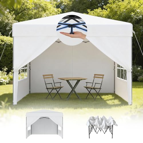 UISEBRT Tonnelle pop-up 3 x 3 cm, étanche, stable, résistante à l'hiver, pliable, avec 4 panneaux latéraux, verrouillage centralisé à un bouton, 3 hauteurs réglables de 240 à 260 cm, pliable - Blanc