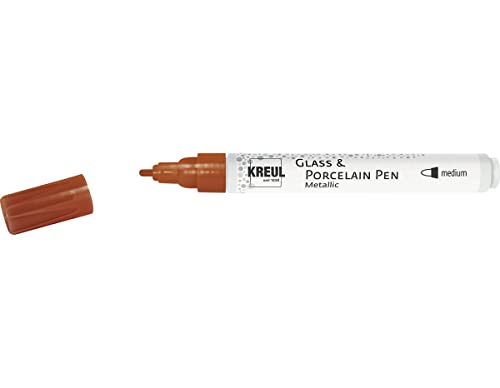 KREUL 16417 - Glass & Porcelain Pen Metallic medium, cuivre, pointe ogive, épaisseur de trait env. 2-4 mm, crayon de peinture pour porcelaine avec couleur métallique, sans solvants