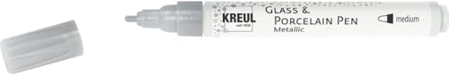 KREUL 16416 - Glass & Porcelain Pen Metallic medium, argent, pointe ronde indéformable, épaisseur de trait d'environ 2 à 4 mm, crayon pour porcelaine avec couleur métallique brillante à base d'eau