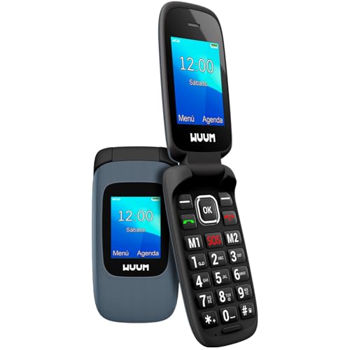 WUUM Clap – Téléphone Portable à clapet à Double écran | Touches et Chiffres volumineux | 2 mémoires directes et Bouton SOS | Bluetooth | Grande Batterie 800mAh | USB-C | Bleu