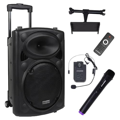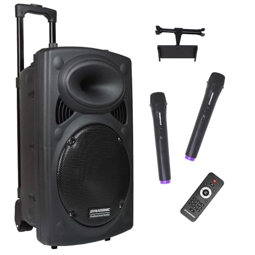 DYNASONIC - Dynapro 12' (dernière génération) Haut-Parleur Portable Système Audio Professionnel Puissance 700W USB Bluetooth Radio FM Microphones, Noir. Prise en Charge des appareils Mobiles