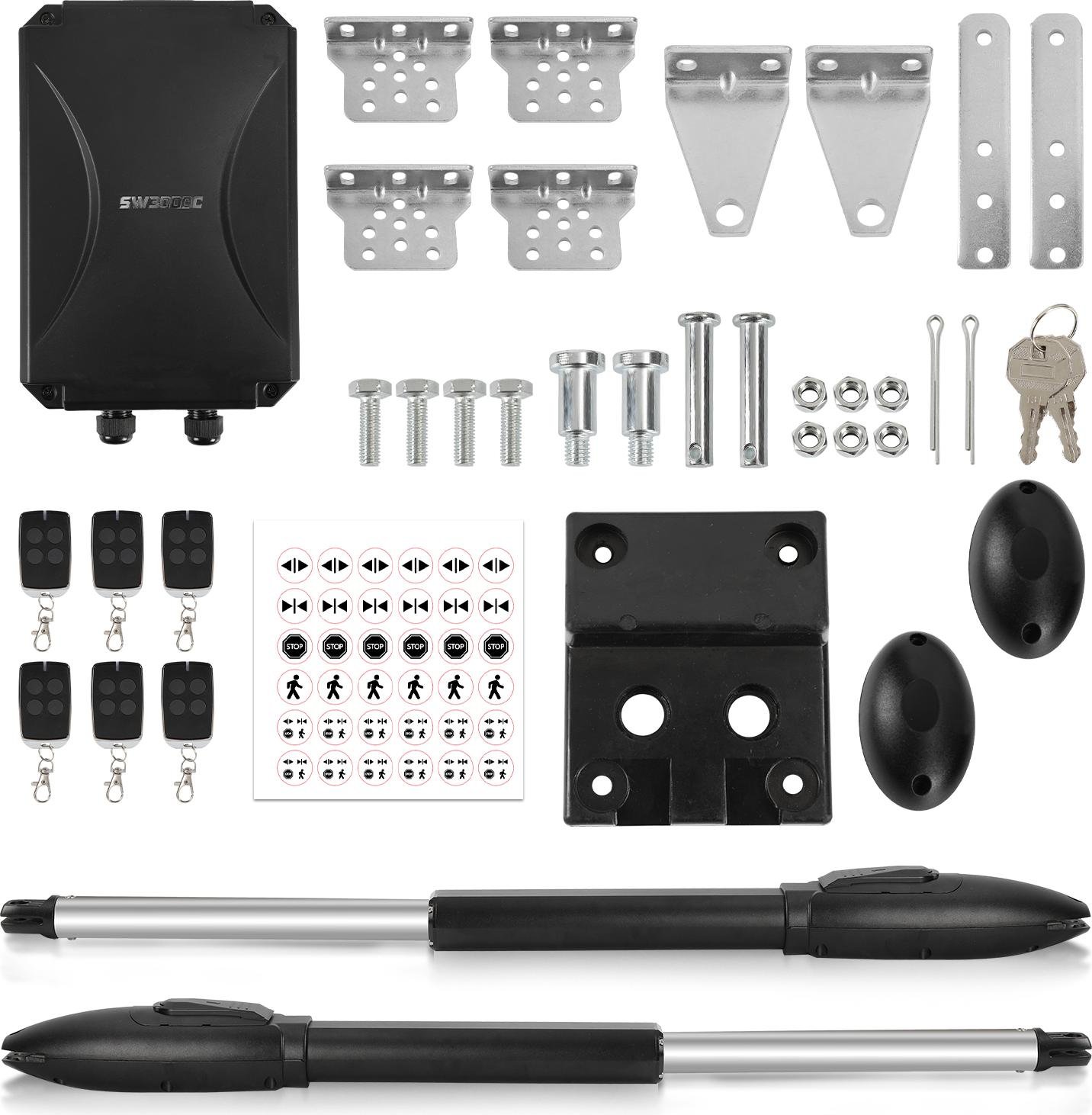 Bettizia Opérateur de portail coulissant Opérateur automatique de portail à battants 600kg Opérateur de portail à double battants Opérateur d'ouverture de portail à battants Set 300kg par battant avec 2 télécommandes (50Wx2)