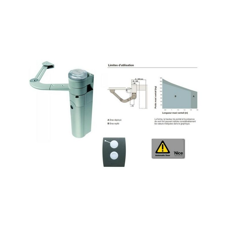 Nice - Kit d'automatisation bras articulé portail 1 battant env. 1,8m walky kit