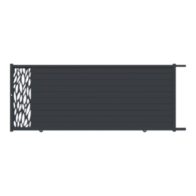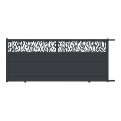 Portail coulissant motorisé avec panneau décoratif feuille aluminium gris l.360cm x H.174,8 x P.4 cm Neva Klikstrom