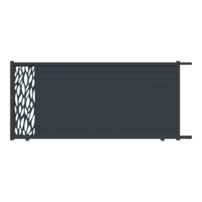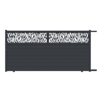 Portail coulissant motorisé avec panneau décoratif feuille aluminium gris l.360cm x H.167,8 x P.4 cm Neva Klikstrom