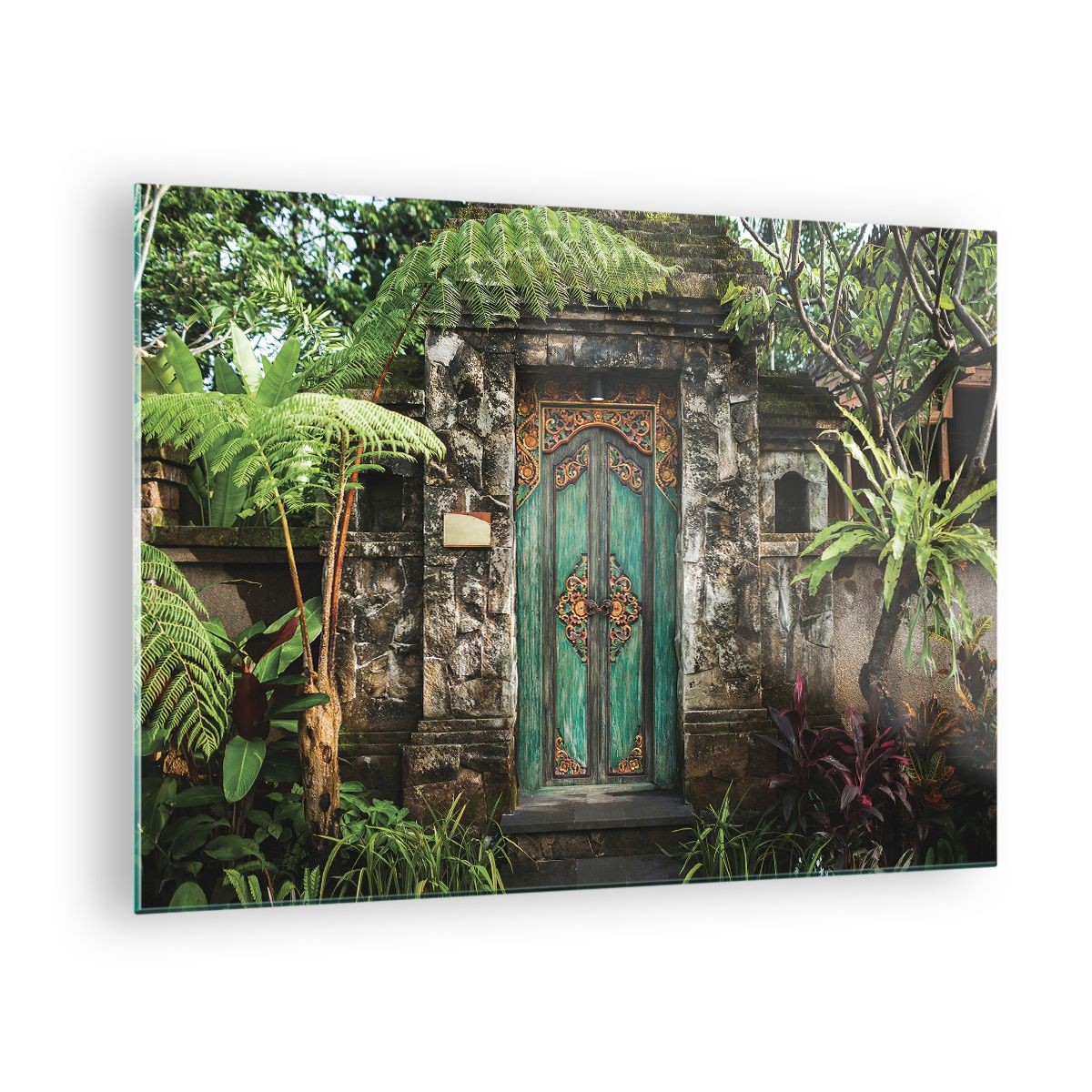 Impression sur Verre 70x50cm Tableaux Image Photo Portail Porte Vert Decoration