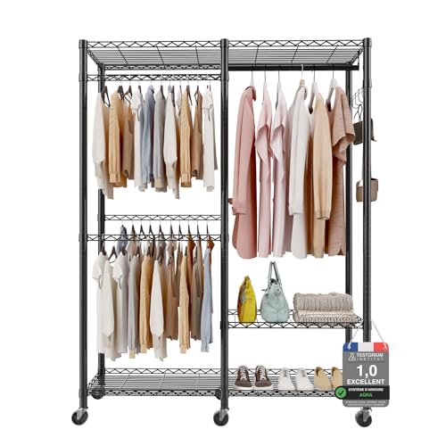 ZzERTE Portant À Vêtements Sur Roulette, Porte-manteaux, Penderie, Avec Double Tringle Et Étagère De Rangement, Chambre, Buanderie(Black,130cm/51.2in)