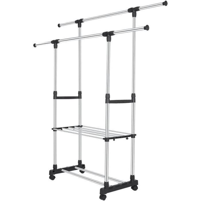 Portant à Vêtements Extensibls Penderie à Vêtements en Métal avec Double Barre Réglable Porte-vêtements à Roulette avec A396