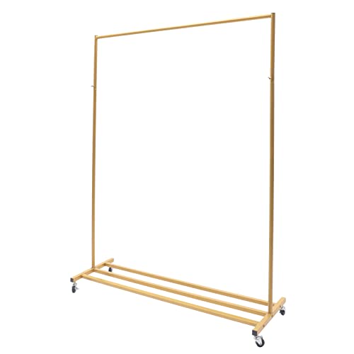 IisrAr Portemanteau doré Tringle à vêtements sur roulettes, Portant à vêtements avec 2 étagères à Chaussures, Peut Stocker des vêtements, des Chapeaux et des Chaussures, adapté aux magasins de vête
