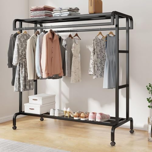 DODOBD Portant Vêtements roulettes,Double Barre,Porte-Manteau,en Acier,en Métal,Charge 200 Kg,Portant a Vetement Solide,Porte Vetements pour Chambre,Portant Vetement Solide,Montage Facile