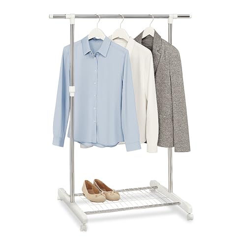 RELOVE Portants,Portant à vêtements,Portant à Roulettes avec porte-chaussures, Rotatif à 360°,penderie Simple sur roulettes vestiaire Mobile avec 1 Barre Extensible Hauteur réglable (un tir)