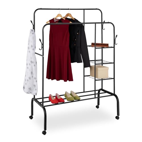 Relaxdays Portant à roulettes, Stable et spacieux, 2 tringles, métallique, H x L x P : 154 x 110 x 55 cm, Noir