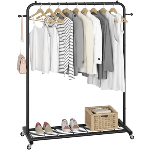 Sywhitta Portant à vêtements sur roulettes, portant à vêtements avec étagère de rangement inférieure en maille, cadre en métal robuste, portant à vêtements à roulettes pour accrocher des vêtements,