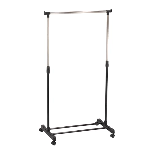 Relaxdays Portant à roulettes, Tringle réglable en Hauteur (90-158 cm), Charge Max. : 15 kg, argenté et Noir