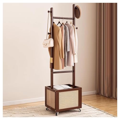 aoiuaoeniu Portant a Vetements bois pour Vhambre avec Étagère de Rangement et Crochets, tringle à vêtements, Capacité de Charge 100 kg, Portant vetement solide à roulettes : 40x40x170CM