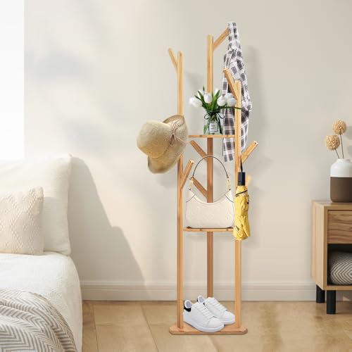 LANTUS Porte Manteau Pieds Bambou: Portant à Vêtements Solide avec Embase Stable Vestiaire Porte Manteau d'Entrée Charge max 15kg Idéal Pour Maison Chambre Salon -107 * 47 * 37cm-Couleur originale