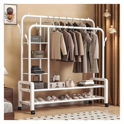 ZzERTE Portant À Vêtements Sur Roulette, Porte-manteaux, Penderie, Avec Double Tringle Et Étagère De Rangement, Chambre, Buanderie(White,130cm/51.2in)
