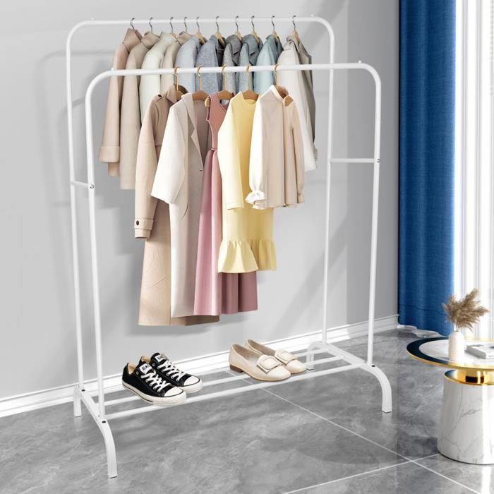 Portant À Vêtements Solide Portant Vetement Avec Roues, Portant Double Porte-vêtements Suspendre En Métal Avec Étagère À Chaussures, Portable Mobile Porte-manteau Sur Pied, 105×140cm ( Color : Wit , S