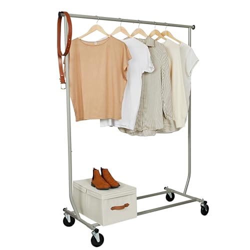 LOVE IT STORE IT - LOFT - Portemanteau Sur Roulettes - Charge max. 80 kg - 4 Roulettes Stables - Portant Vetement Solide Avec 1 Tringle À Vêtements - 129x54,5x166 cm - Gris Clair