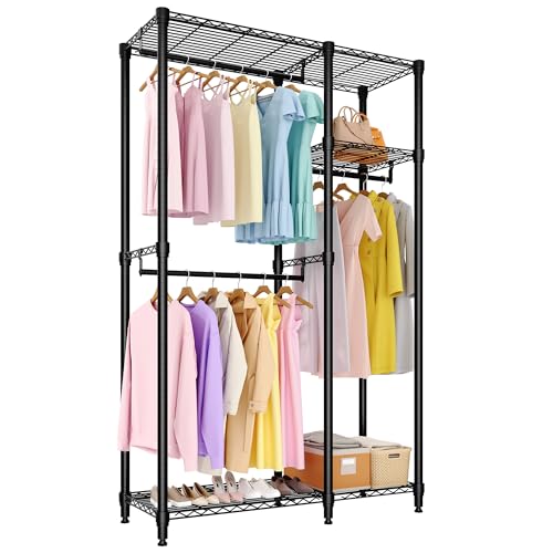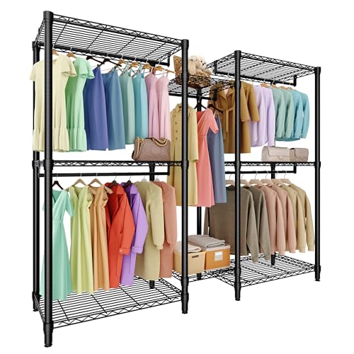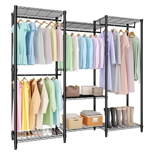 GarveeHome Portant à vêtements robuste avec étagères, étagère réglable en fil métallique, organiseurs de placard autonome et rangement pour chambre à coucher, charge de linge de 310,3 kg