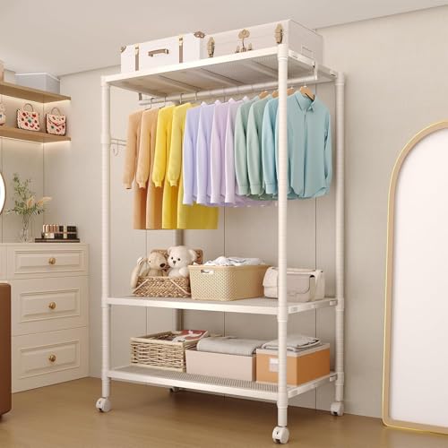 Portant à vêtements à roulettes robuste à 3 niveaux avec étagères réglables et crochets latéraux, armoire autoportante en métal pour chambre à coucher, vestiaire,115 * 45 * 180cm