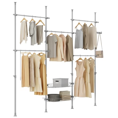 SoBuy Portant à vêtements télescopique solide - Penderie ouverte réglable avec tringles, Porte manteau pour chambre/dressing, Gris FRG109-II-HG