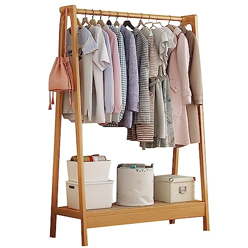 BEARQUN Portant à Vêtements en Bois, Porte-Manteaux avec Étagère à Chaussures, Solide et Durable, avec Crochets, Capacité de Charge de 100 kg, pour Maison Salon : 66/86/116CMx40CMx160CM