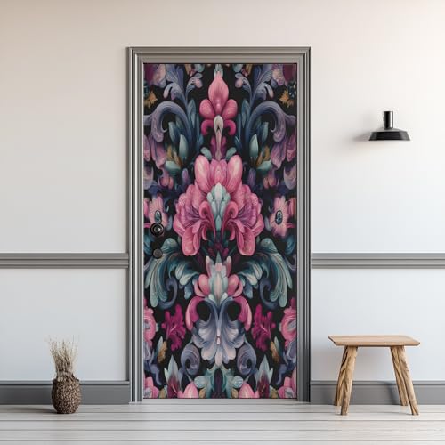 Sticker Porte Damassé, Sticker Mural Porte 63 x 205 cm Fleur Baroque Vintage, pour Salon Chambre Décoration De La Maison Muraux Imperméable Stickers Amovibles SR14zh109A