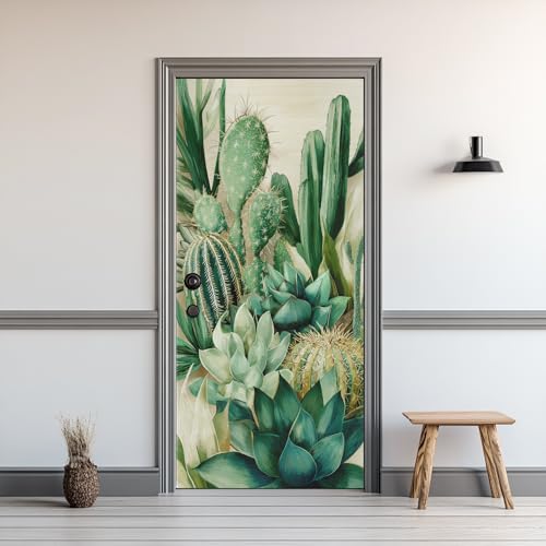Sticker Porte Tropical Plante, Sticker Mural Porte 63 x 205 cm Aquarelle Cactus, pour Salon Chambre Décoration De La Maison Muraux Imperméable Stickers Amovibles SR14zh189A