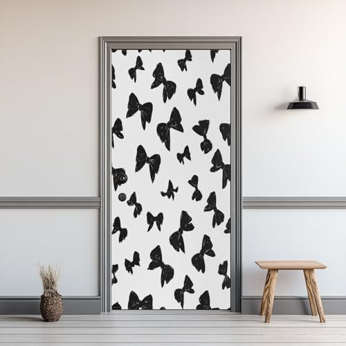 Sticker Porte Noir Blanc Nœud, Sticker Mural Porte 63 x 205 cm Nœud Papillon, pour Salon Chambre Décoration De La Maison Muraux Imperméable Stickers Amovibles SR14zh85A