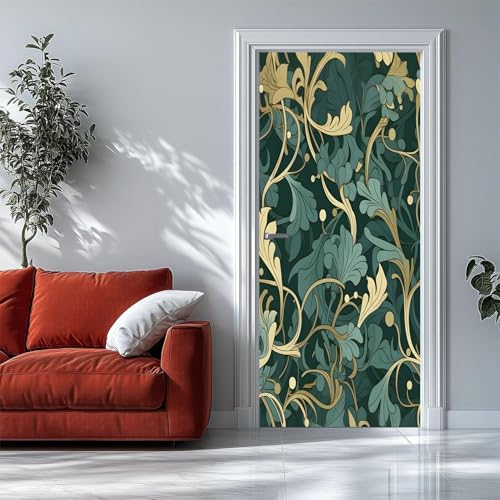 Auto-Adhésif 3D Stickers Porte Style baroque Poster de Porte 63x205 cm Feuilles d'acanthe vertes Autocollants de Décoration pour Intérieure Bureau Chambre à Coucher Salon Art Papier Peint