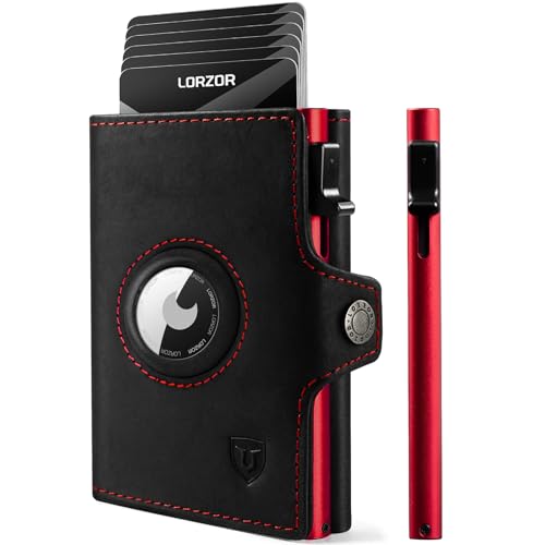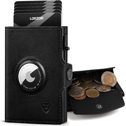 LORZOR® Porte Carte Airtag, Portefeuille Airtag en Cuir Véritable avec Porte-Monnaie, Portefeuille Homme pour 10 Cartes, Minimaliste Porte Carte Homme avec Blocage RFID, Cadeau