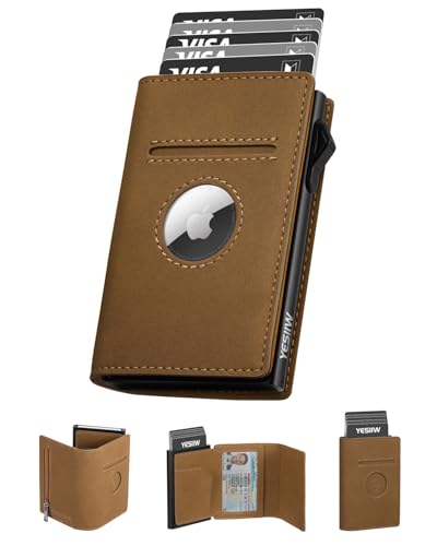 YESIIW Porte Carte Airtag Portefeuille Homme avec Blocage RFID Pop-up Porte Feuille pour Homme pour 10 Cartes Portefeuilles et Porte-Cartes avec Monnaie Portefeuille Intelligent (Marron Foncé)