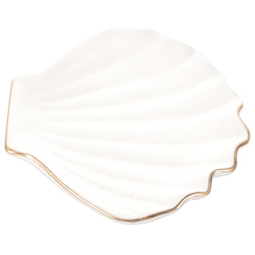 Denique Plateau à bijoux en forme de coquillage, plateau de rangement en céramique à clapet pour bijoux, bague, porte-clés, assiette à bijoux décorative, organisateur de bijoux mignon pour décoration