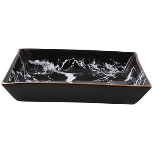 Veemoon Plateau à Bijoux en Céramique Noir Marbré Grand Format, Assiette Décorative Bord Doré, Porte-bagues Élégant pour Rangement sur Bureau ou Vitrine, Plateau de Rangement pour