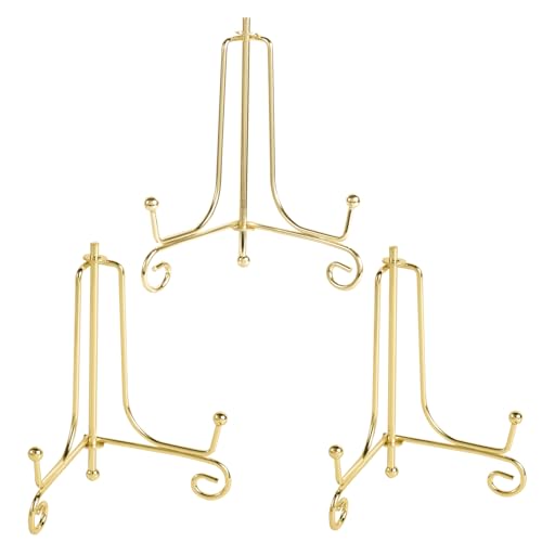 QWORK® 3PCS Chevalet Support Présentoir Porte Assiette Décorative - 4,5 Pouces, Métal Doré, Design Minimaliste