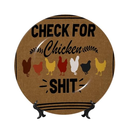 Tapis de Porte « Crotte de Poulet » Style Ferme, Assiette décorative Ronde avec Support, Assiette en céramique Artistique pour la Cuisine, Ornement en Porcelaine, décoration Murale pour la Maison ou