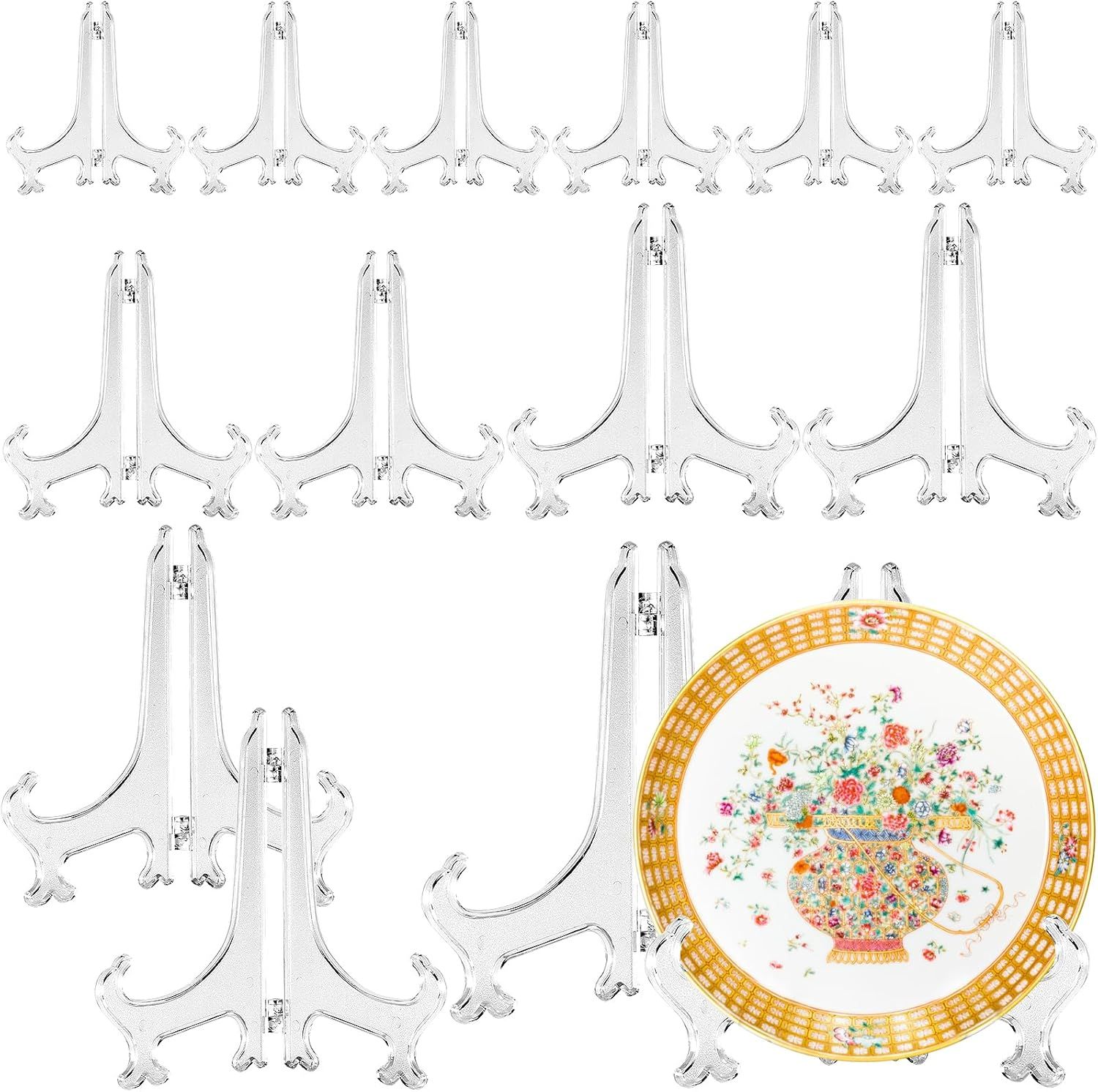 Celepoir 14 Piece Pliable Support Assiette, 3-7 Inch Plastique Transparent Porte Assiette, Multifonctionnel Support Decorative, Mini Chevalet pour Vitrine Couverts de Collection, Photo Cadre, DVD