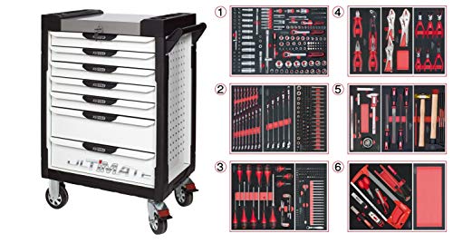 KS Tools - 803.7452 - Servante d'atelier complète ULTIMATE 7 tiroirs equipée de 455 outils - boîte à outils complète - Couleur Blanche - porte flacons