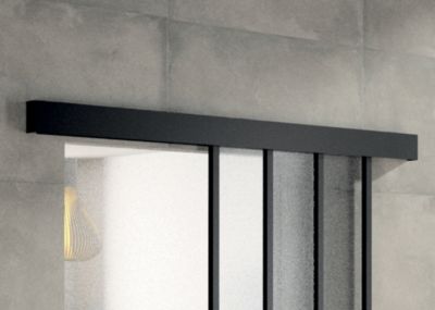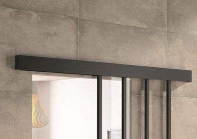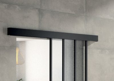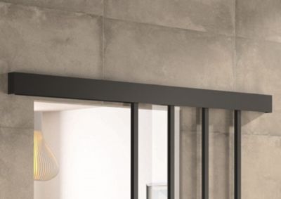 Kit porte 730 atelier noir verre depoli avec rail bandeau decor assorti