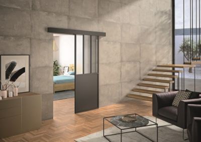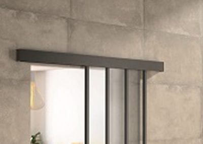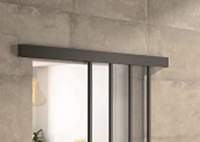 Kit porte 930 atelier noir verre depoli avec rail bandeau decor assorti