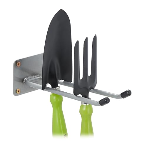 Relaxdays Support Mural, 24 cm de Long, Double Crochet pour Le Mur, Porte-Outils Garage, Atelier & Cave, Acier, argenté