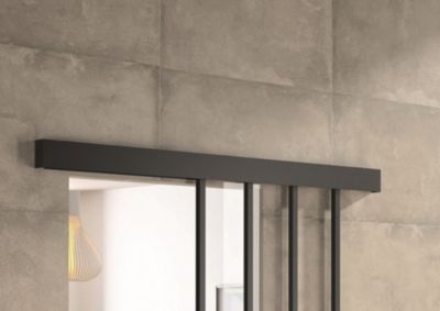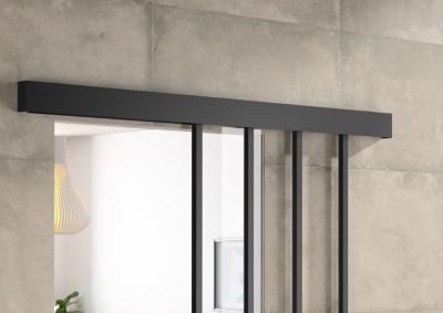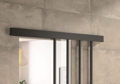 Kit porte 830 atelier noir verre depoli avec rail bandeau decor assorti